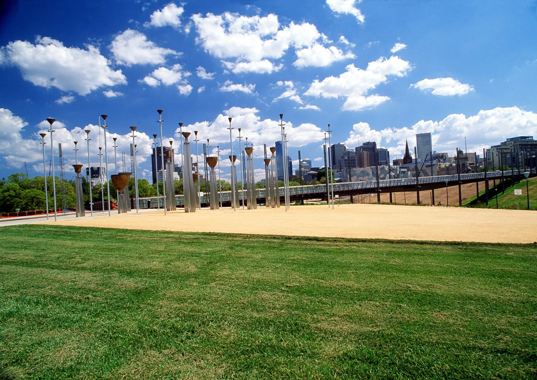Commissioned by the Melbourne International Festival of the Arts for Arts Victoria, the Federation Bells were conceived as a permanent sculptural installation within Birrarung Marr. As a resonant marker of the Centenary of Federation and as a collaborative effort, the installation brings together sculptor Anton Hassell, acoustic designer Neil McLachlan, and lighting designer Nathan Thompson. The project explores an innovative approach to the perception and experience of the sonic and visual qualities of bells and their role in the civic domain.