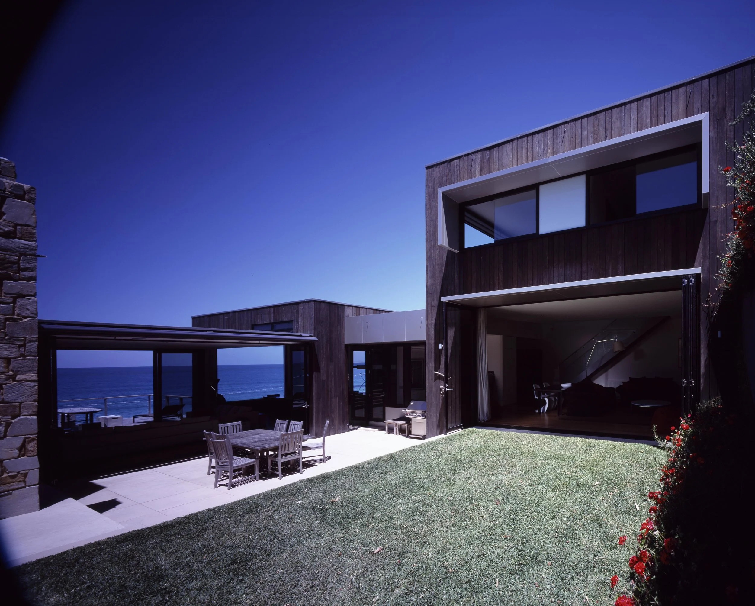 This arrangement creates an intimate, secluded atmosphere, allowing the residents to enjoy the beauty of the coastal environment while maintaining a sense of retreat. The simplicity of the timber material palette and the careful positioning of the wings ensure that the house feels both connected to the natural world and distinctly private, offering a serene sanctuary in its coastal setting.