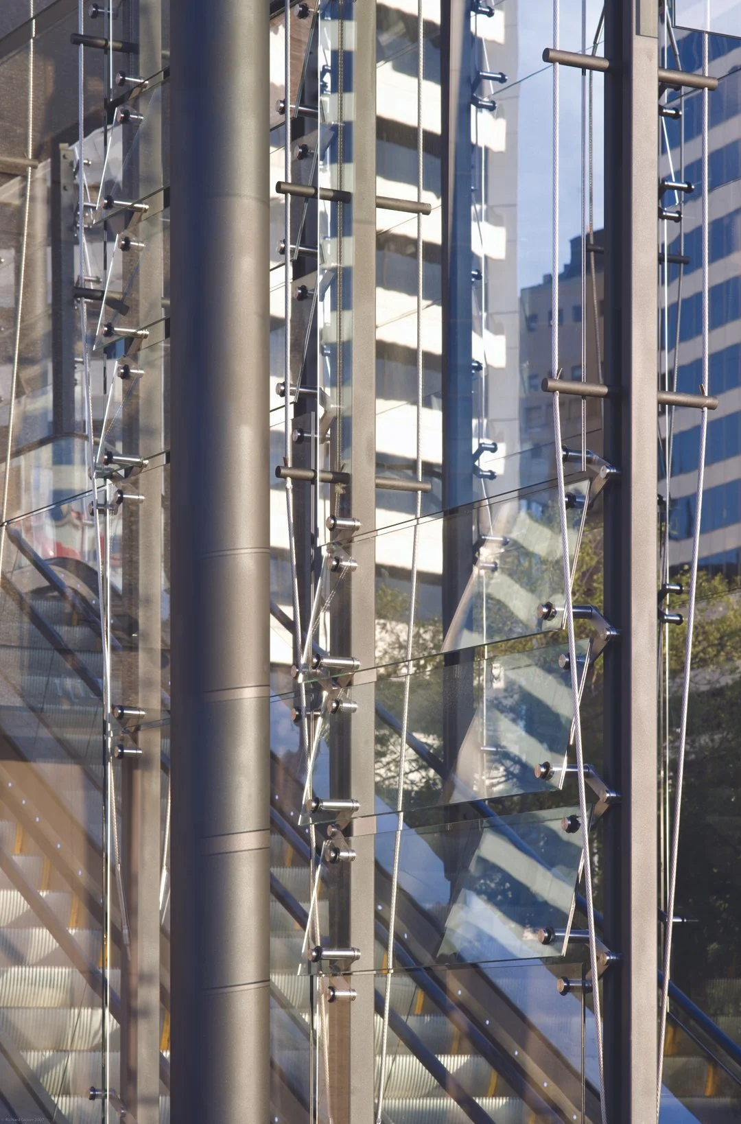 The design intent is to create a robust, low maintenance canopy to provide weather protection to the escalators, while maximising transparency and maintaining the vista across to Darling Harbour.