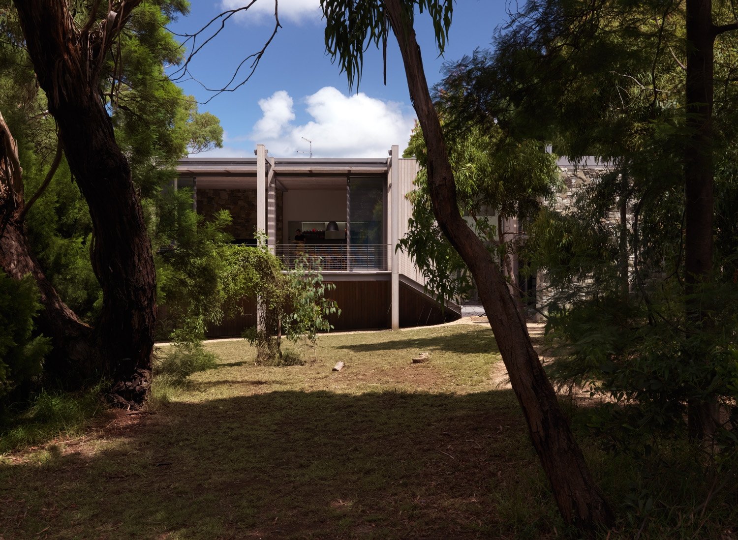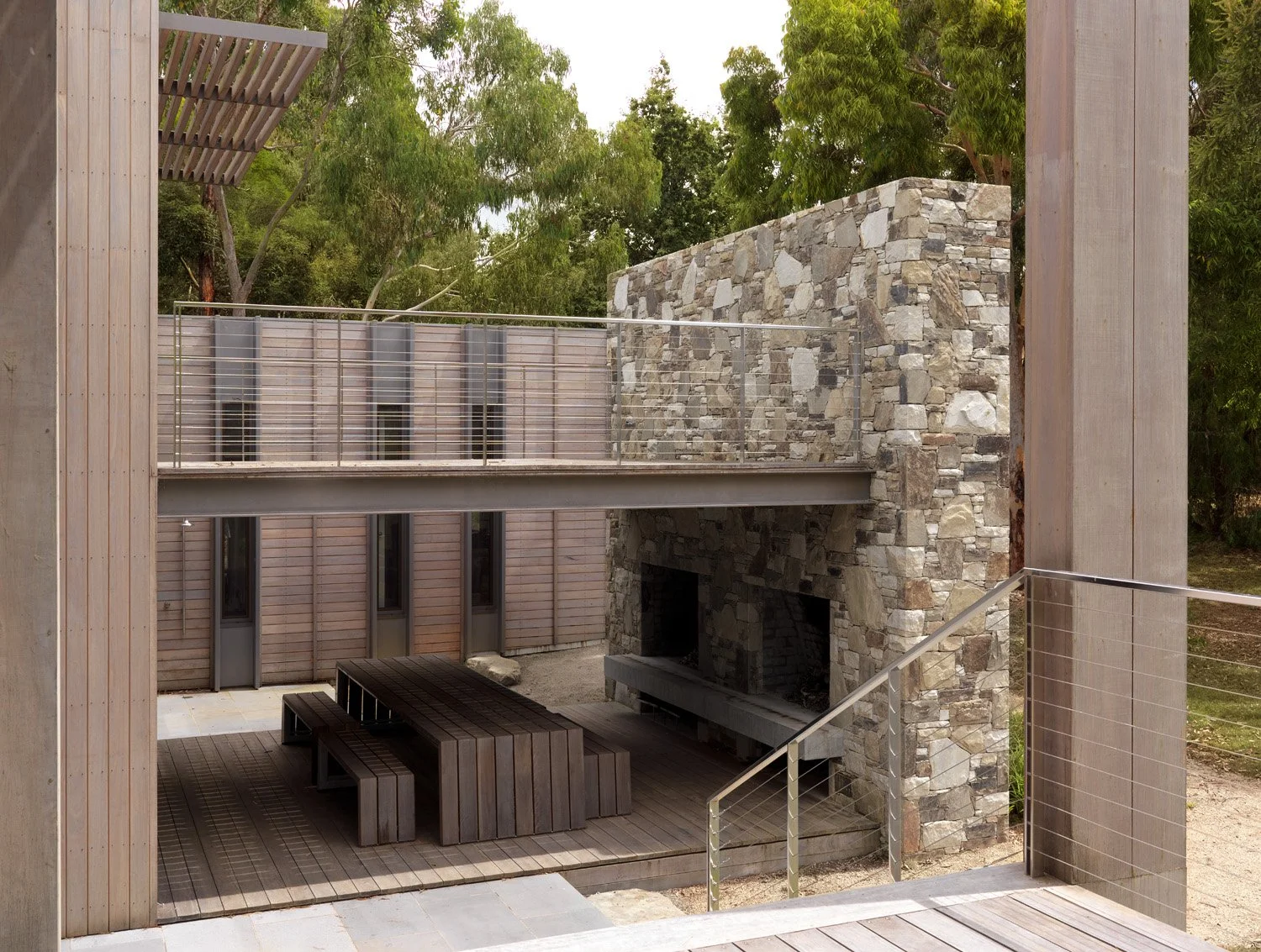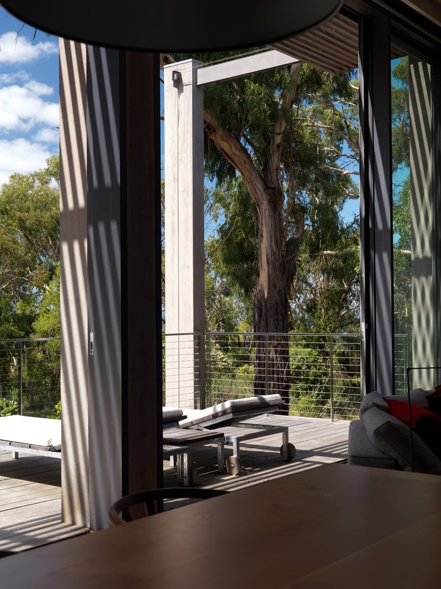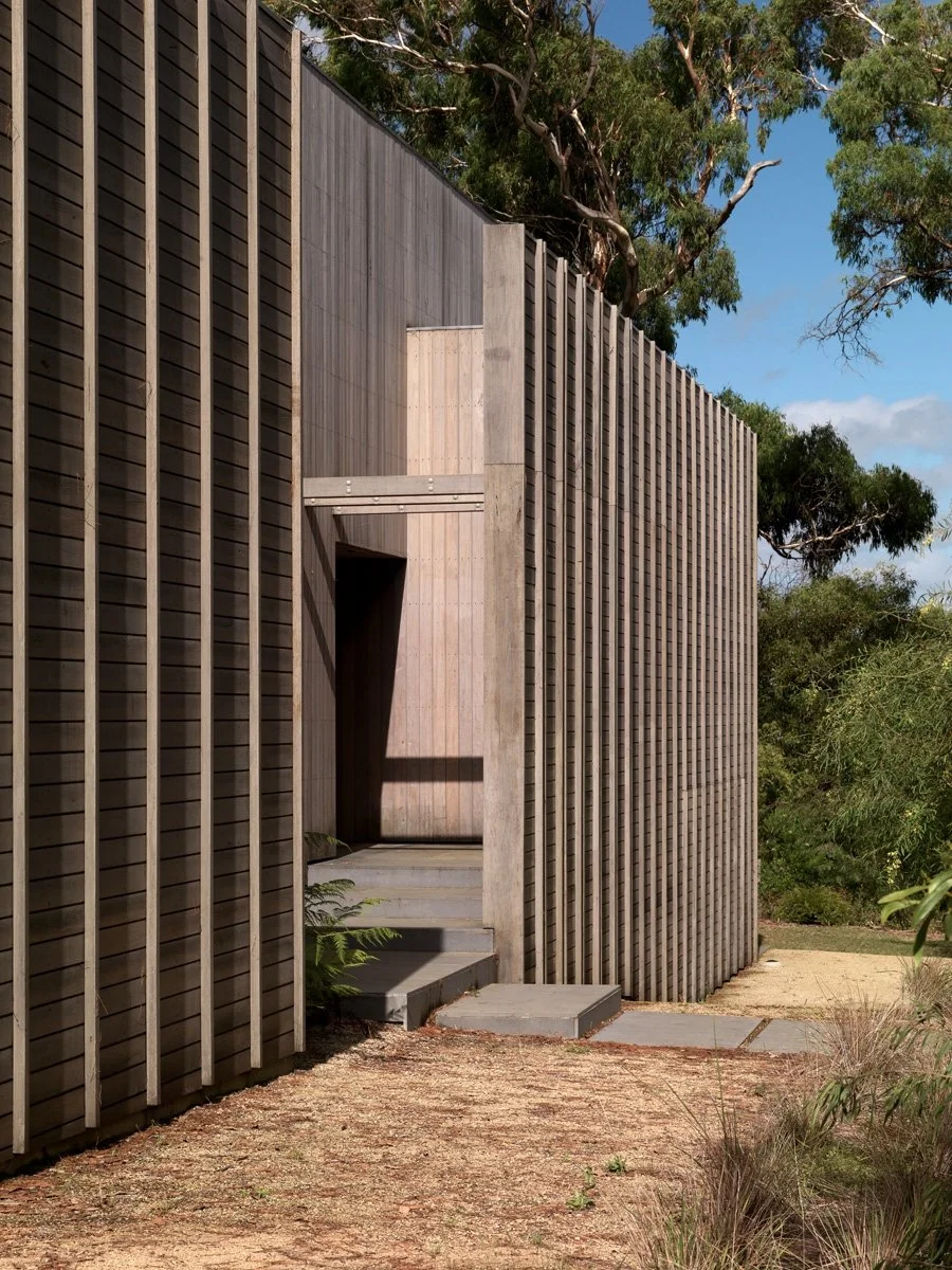 Overlooking Westernport Bay, the four-bedroom house is both a private sanctuary and a welcoming space for the gathering of larger family groups. The outer form subtly references the unadorned rural buildings of the region with a composed, screened façade that presents to the street. Internally, a sequence of living spaces, decks, and terraces unfold to the northern aspect, ensuring that the planning of the house offers opportunities for diverse engagement both internally and externally. Balancing ideas of retreat and connection, the resulting house nestles into its unique coastal context.
